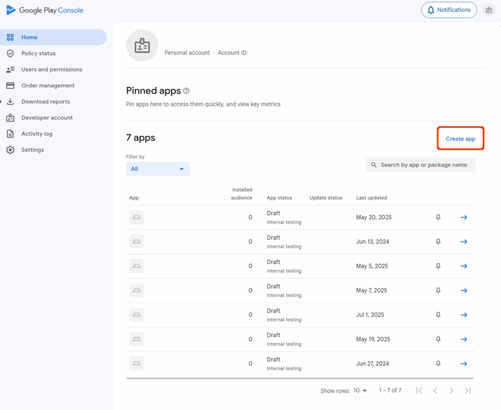 Prerequisites: An active Google Play Developer account (one‑time $25 fee) and a signed .aab file. If you still need to build your bundle, follow our companion tutorial: How to create and download an Android AAB.